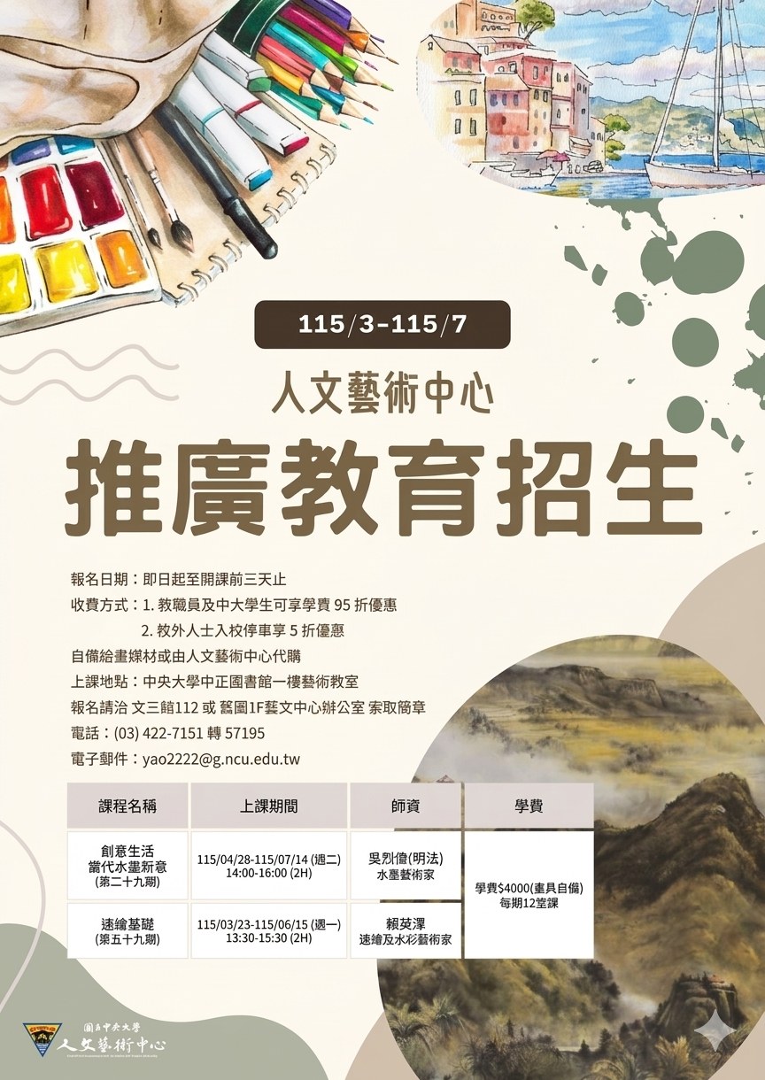 人文藝術中心推廣教育招生115/3-115/7
