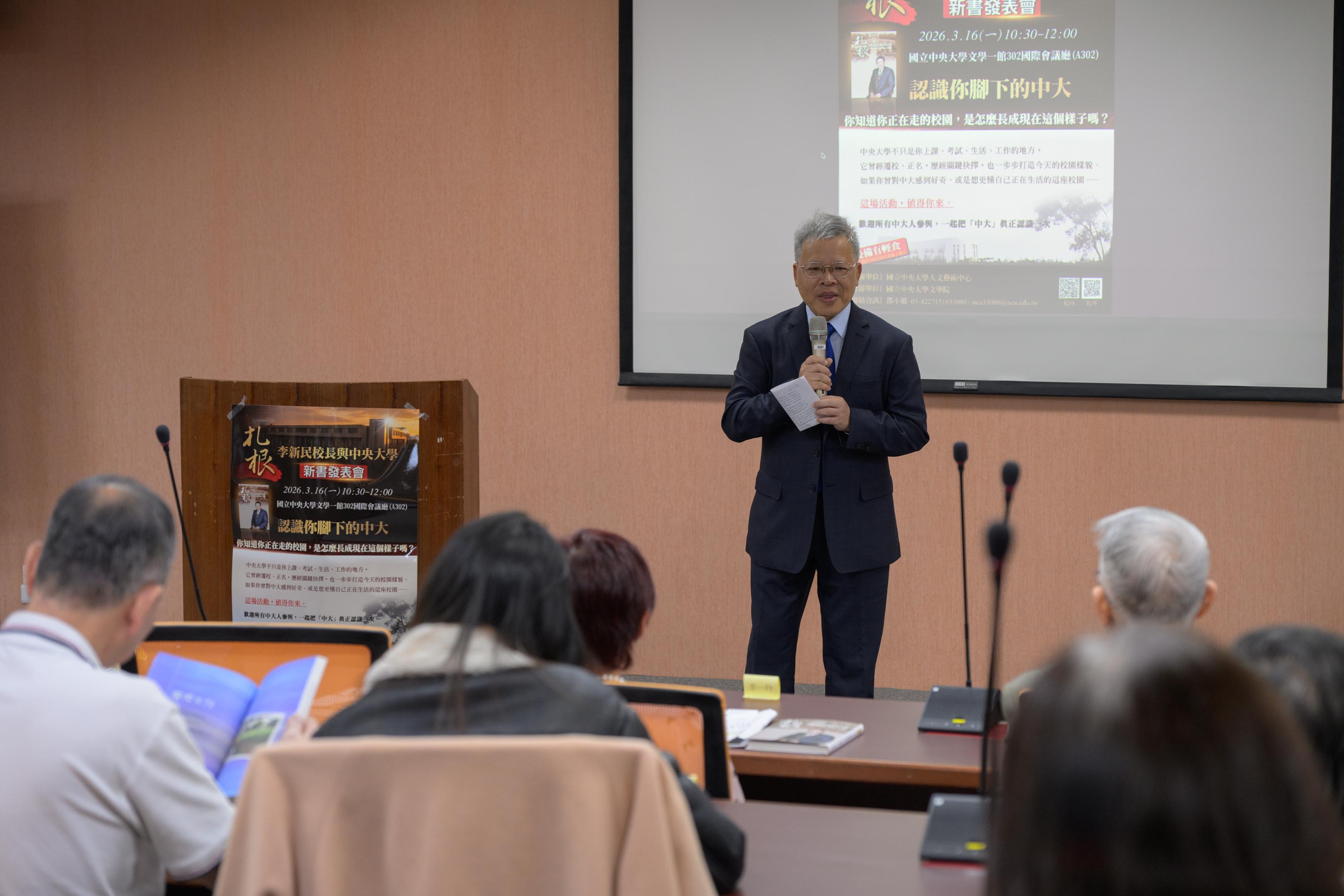 以《扎根:李新民校長與中央大學》為核心,透過主編導讀、親友同事分享與校史回顧,呈現李新民校長九年任內的重要校園治理理念、重大建設與關鍵事件,並藉由「認識中大」活動,引導青年學子理解中央大學的發展脈絡,深化對校園的認同與歸屬感。