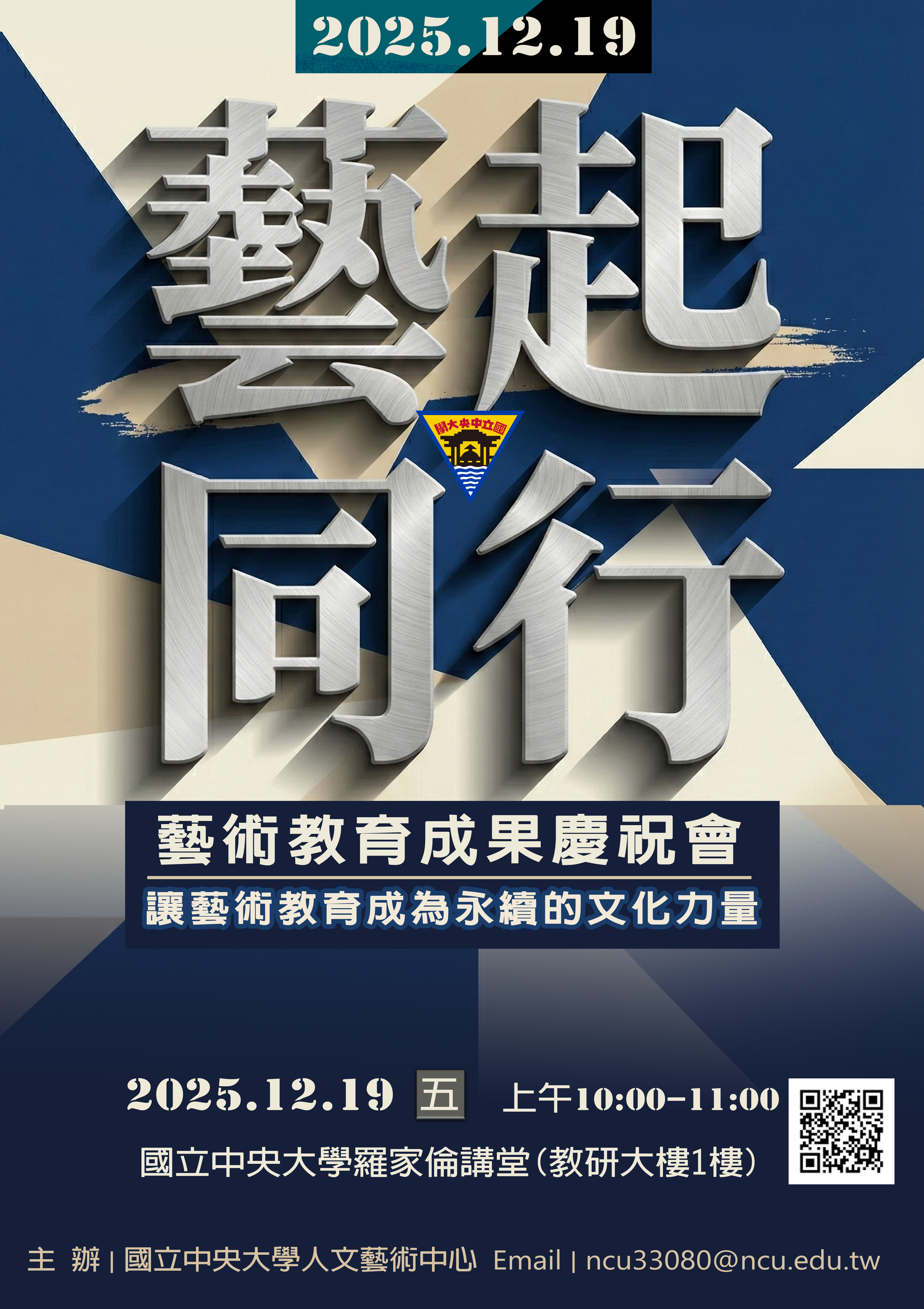國立中央大學榮獲114年第12屆「教育部藝術教育貢獻獎」績優學校-大專組,崑曲博物館館長榮獲「終身成就獎」。為深化此殊榮之社會影響力, 邀請各界與全校師生共襄盛舉,期望未來人文藝術中心能在此基礎上持續深化、發揮更大效益。